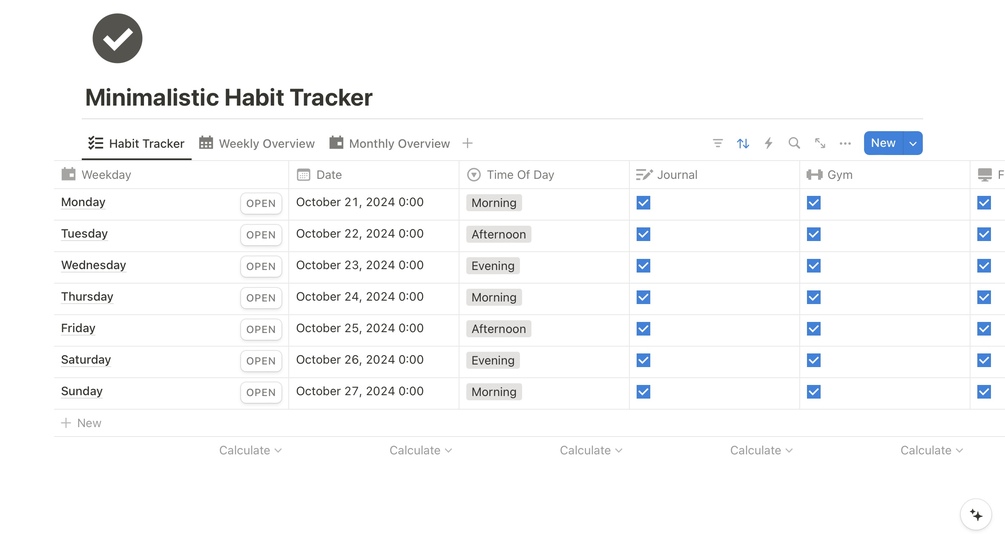 - Daily Overview - Begin each day with a new day of logging/checking-off your daily habits. This section will help you maintain consistency and providing a snapshot of your daily achievements.